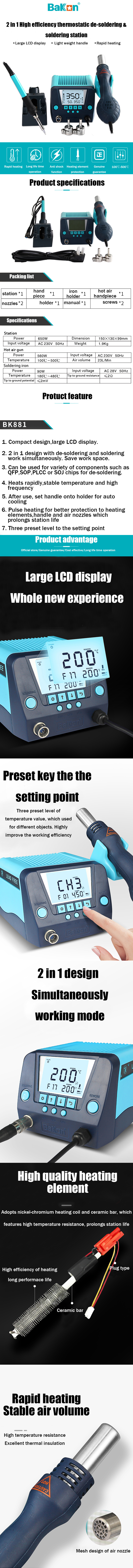 BAKON BK881 digital display LCD 2 in 1 hot air rework station and soldering station