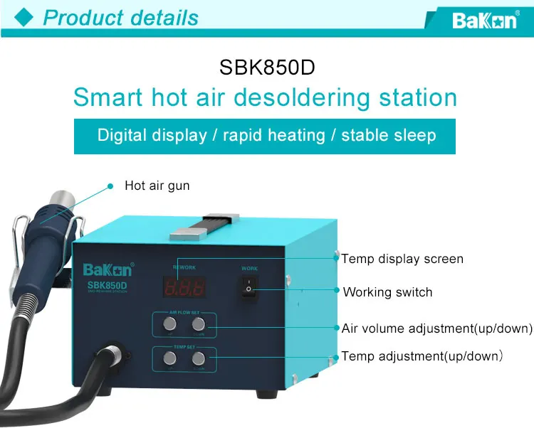 | Item | Bakon 850 air pump esd safe solder station | ||||||