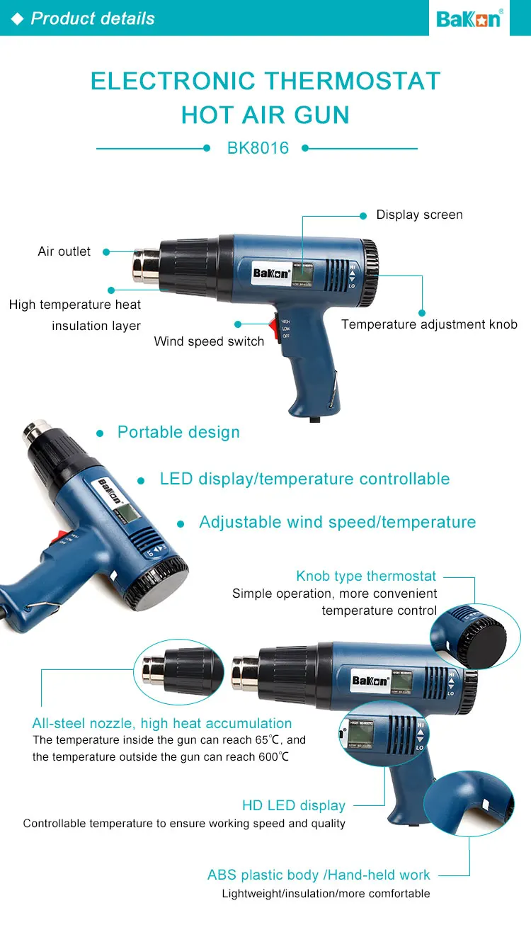 | Item | Bakon BK8016 industrial electric hot air heating gun | ||||||