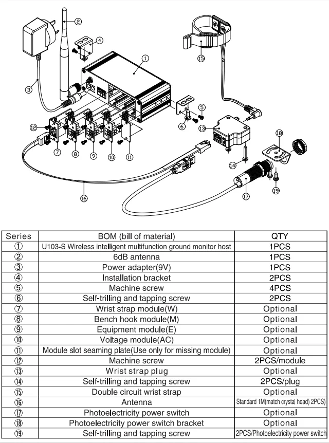 1. Choose the type of monitiring point that can monitor device at the same time,bench hoop,wrist strap,ground resistance,leakage voltage of equipment,the four kinds of modules can be combined with any three-way modules as required.