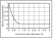 The below illustration displays the relationship between both:The static elimination of target project from +1000V to +100V ,the time take and the distance from target project to static elimination blower.