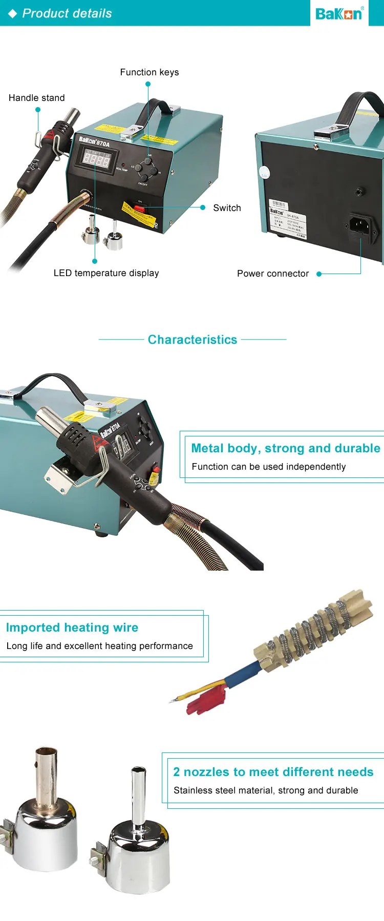 | Item | High quality BK870A Hot Air SMD Rework desoldering station | ||||||
